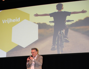Voorzitter van de VLLV, Jan Hofman, is zelf directeur van een school voor speciaal onderwijs, de J.H. Donnerschool. Vanuit zijn visie op het leerlingenvervoer vertelde hij over de beleving zoals hij die ervaart als het gaat om zelfstandigheid. Zijn presentatie begon dan ook met een afbeelding met de tekst “Vrijheid”. Zelf ervaart hij die vrijheid met name als hij erop uittrekt met zijn motor.